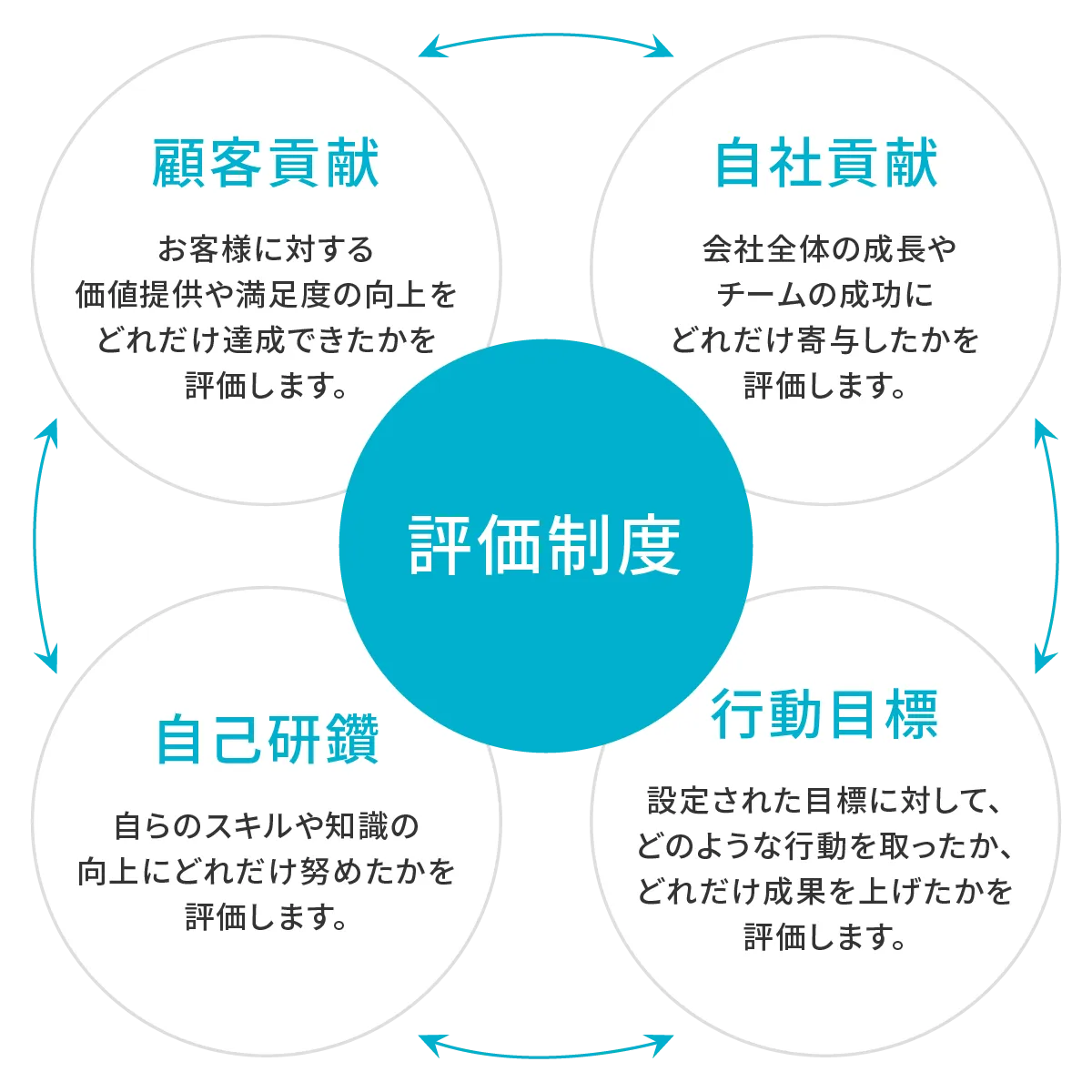 キャリアの方向性を確認します。これにより、社員一人一人に合った柔軟なキャリア形成ができる環境を提供しています。